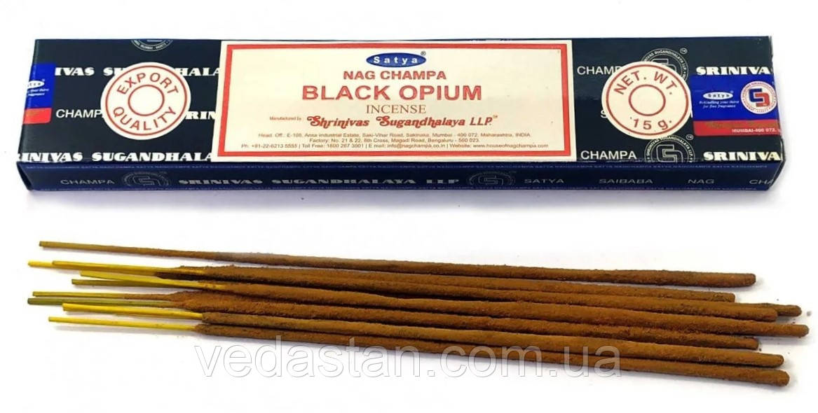 Благовонния натуральні Nag Champa Black Opium Satya, Чорний Опіум, 15г. Блек Опіум занепокоєння, нервозність